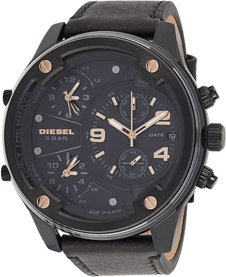 Price: £231⁶⁶. Model: DZ7428. Year: 2019. Display: Analog. Water Resistance 3 ATM. Material: Stainless Steel. Band Material: Leather.
